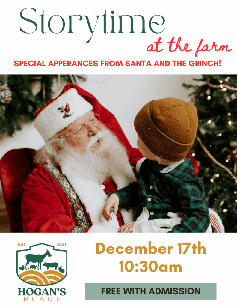 Wanna meet Santa AND the Grinch? They will both be coming to Story time at the Farm on Wednesday, December 17th at 10:30am!